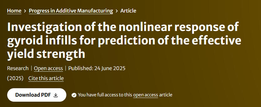 研究人员指出:“半经验方程简化了强度预测过程,便于将螺旋填充结构应用于设计决策或优化程序。通过执行压缩和剪切试验,我们验证了有限元分析(FEA)预测的强度与实际制造数据之间的一致性。所提出的分析方法可以轻松地拓展到其它填充类型的类似性能预测中。”