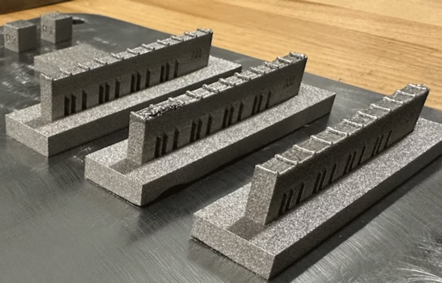 △使用LPBF工艺制造的Inconel 718测试样品。打印过程中的翘曲和分层导致部件翘起并从打印平台上脱落,最终导致打印失败(起翘问题已通过调整工艺参数得到解决)