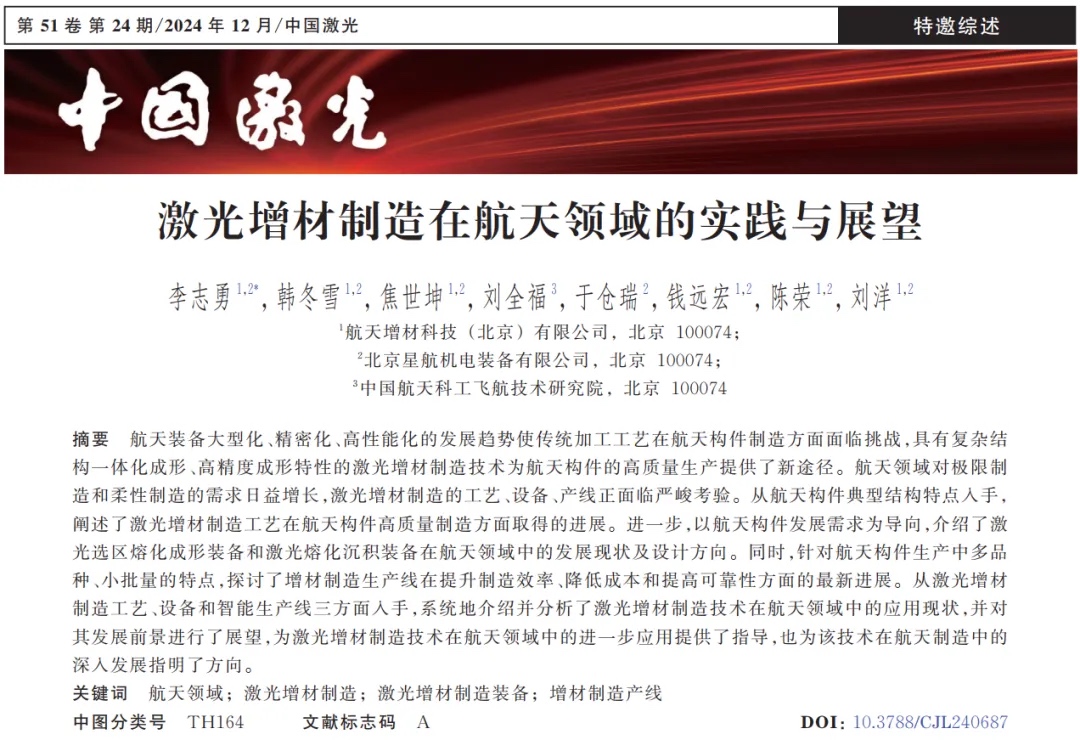 航天三院 :激光增材制造在航天领域的实践与展望