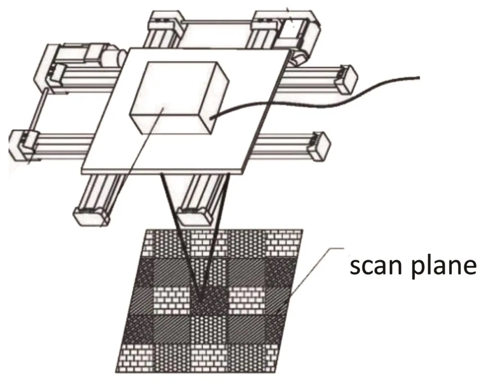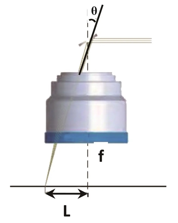 激光扫描幅面由焦距f与振镜摆动角度θ共同决定: