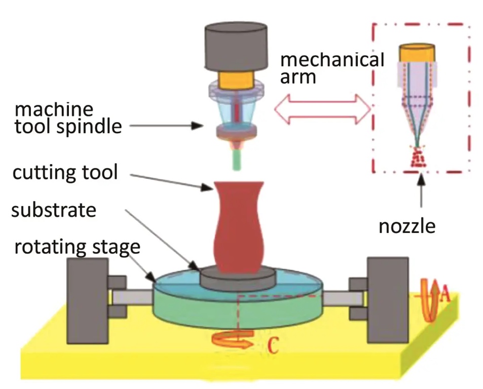 3) 五轴增减材复合装备。对于这类装备,研究重点应放在复合成形过程中的五轴运动轨迹控制上,以实现更复杂结构的精确制造。