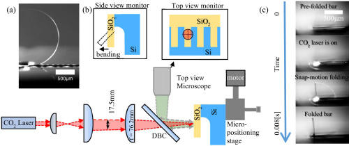 随后,实验室工程师Ronen Ben Daniel在硅芯片上制备二氧化硅玻璃层,通过蚀刻与二氧化碳激光脉冲协同,实现了玻璃薄片在不到一毫秒内以2米/秒速度、超过2000米/秒²加速度完成折叠,达到了0.1微弧度的空间精度。