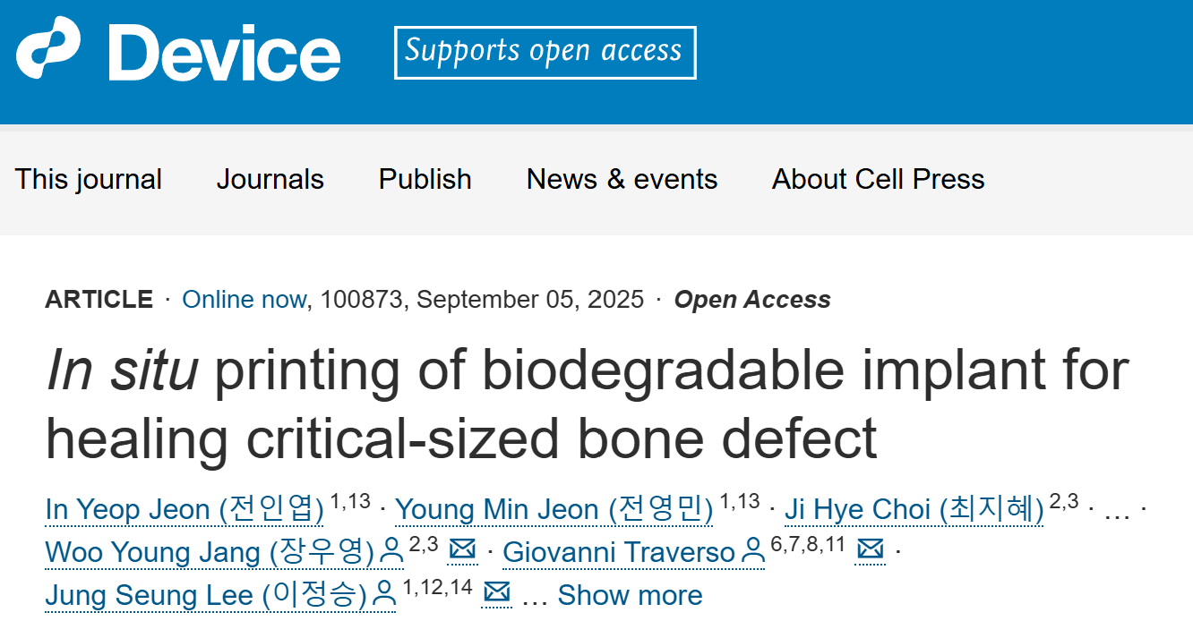 2025年9月6日,韩国成均馆大学、高丽大学和麻省理工学院(MIT)的联合研究团队研制出定制化的骨植入物,可使用类似胶枪的设备熔化塑料粘合剂,直接提取骨植入物,用于患者的骨折或缺损部位。