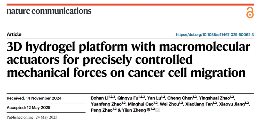 基于大分子致动器的3D水凝胶平台对癌细胞迁移的精准机械力调控