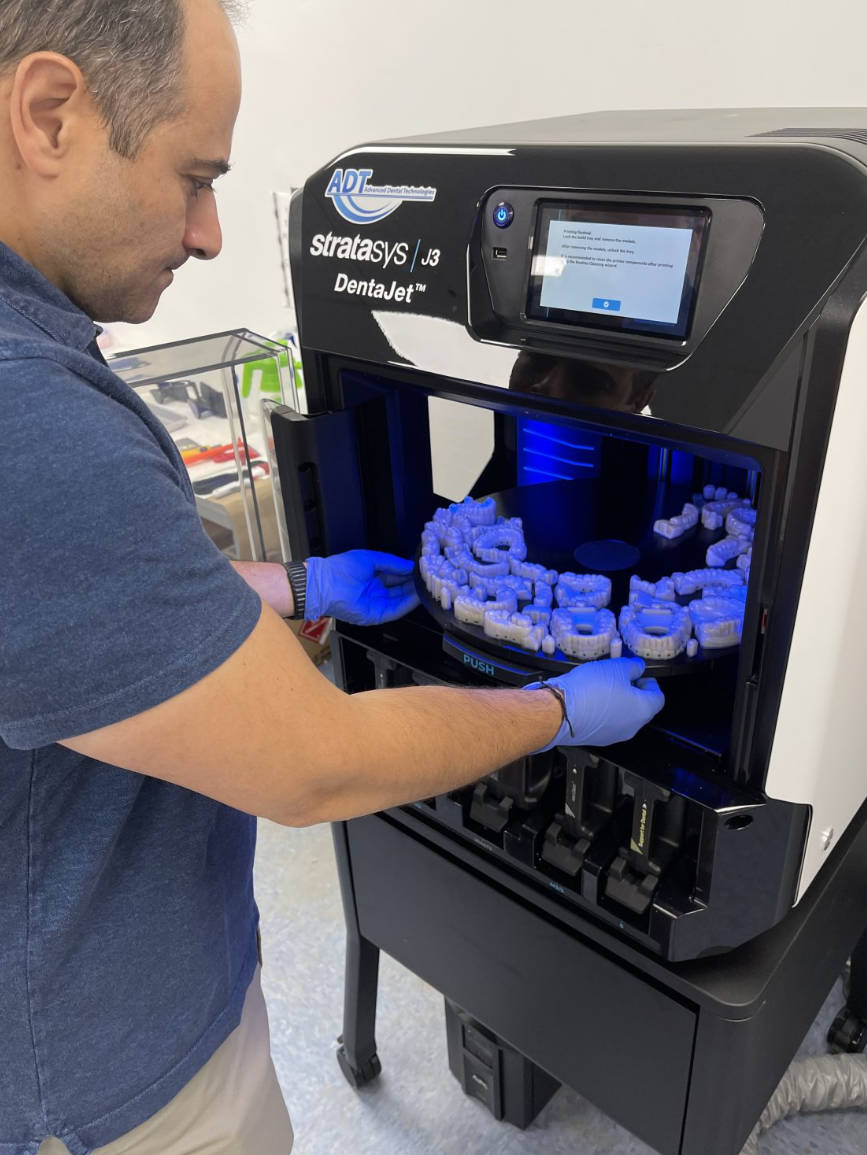 3D打印并非取代医师,而是放大他们的能力,使用Stratasys J5打印机,10小时内可一次性打印40副义齿。技师得以从重复劳动中解放,专注于设计、调色等更需要专业判断的环节。