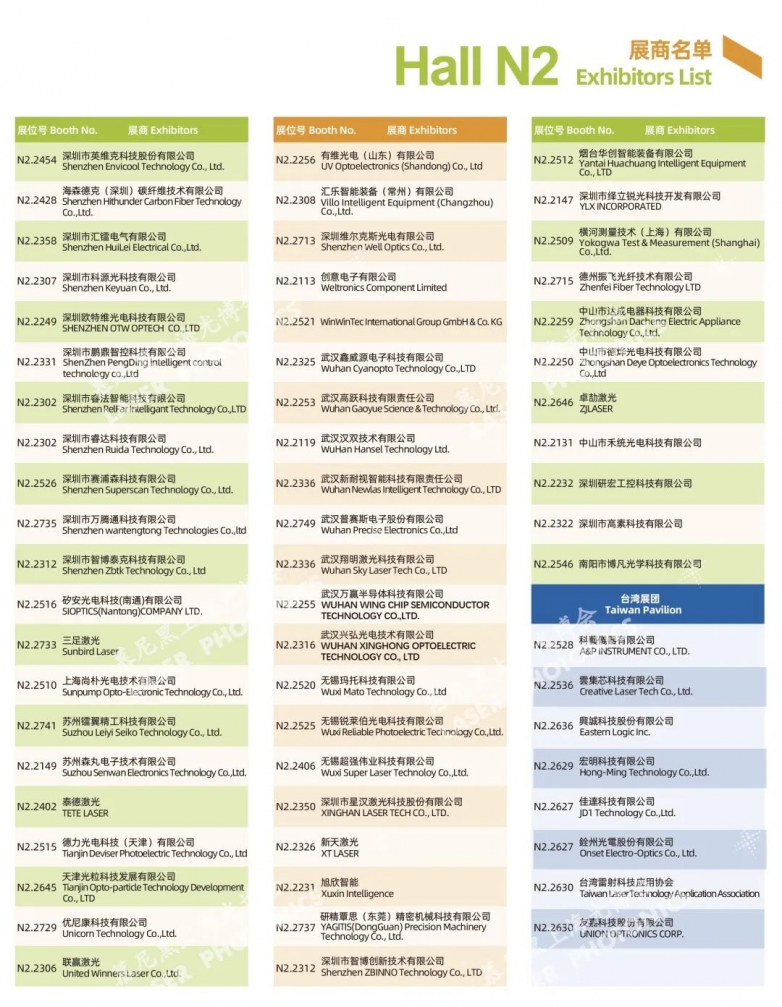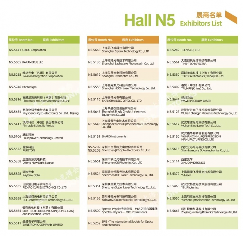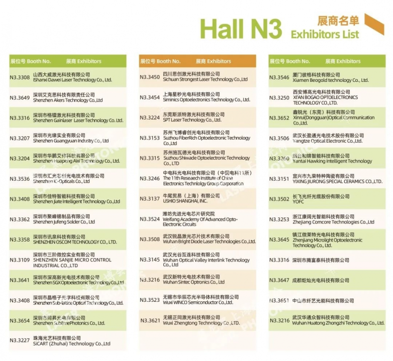N3馆(激光器与光电子/集成光子及量子专区)展位图