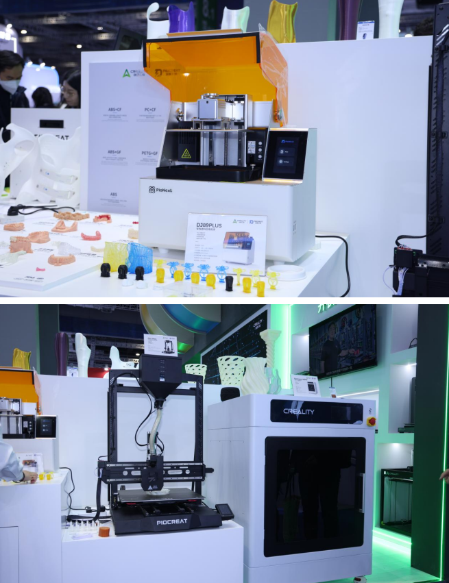 在此区域,创想三帝为鞋业设计、医疗齿科、工业制造多个领域提供精密高效的增材制造解决方案。“IPX2定制鞋垫3D打印机”让个性化定制成为可能;“DJ89 PLUS齿科3D打印机”精准高效,助力口腔医疗发展。“工业级颗粒料3D打印机G5 Ultra”支持多种颗粒材料和自由染色打印,螺杆喷头设计使打印效率提升。此外,Sermoon M500打印尺寸达510*510*610mm、兼容多种耗材,满足大件和批量零件的打印,是原型验证、车间制造、工业设计、教育科研等领域的得力干将。